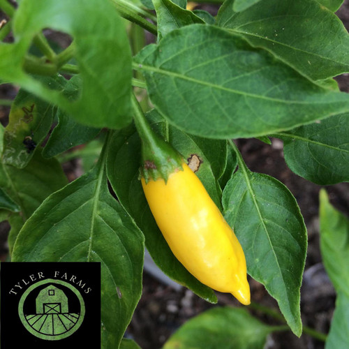 The peppers, which grow to about two to three inches in length, start off green and mature to a golden yellow color. During the summer months, Aji Lemon pepper plants bloom white flowers, making them beautiful plants that add a burst of bright color to any garden. For those looking for a different yellow pepper with a higher heat rating Scoville Scale, we recommend the Yellow 7 Pot, Fatalii, or Yellow Ghost pepper.
