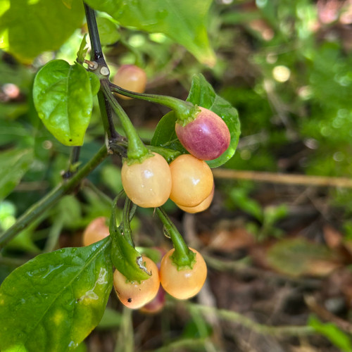 Olho de Mutum pepper is a small but very hot pepper native to Brazil, named for its resemblance to the eye of the mutum bird. It is especially common in the Amazon and central regions of the country and is closely related to other bird’s eye–type peppers. Despite its tiny, round shape, it packs intense heat, often estimated between 50,000 and 100,000 Scoville Heat Units, making it much hotter than a Jalapeño. When ripe, it typically turns peach and has a sharp, fiery flavor with slight fruity notes. In Brazilian cuisine, Olho de Mutum pepper is commonly used in hot sauces, pickled preparations, and infused oils or vinegars, where small amounts are enough to add strong heat and flavor.